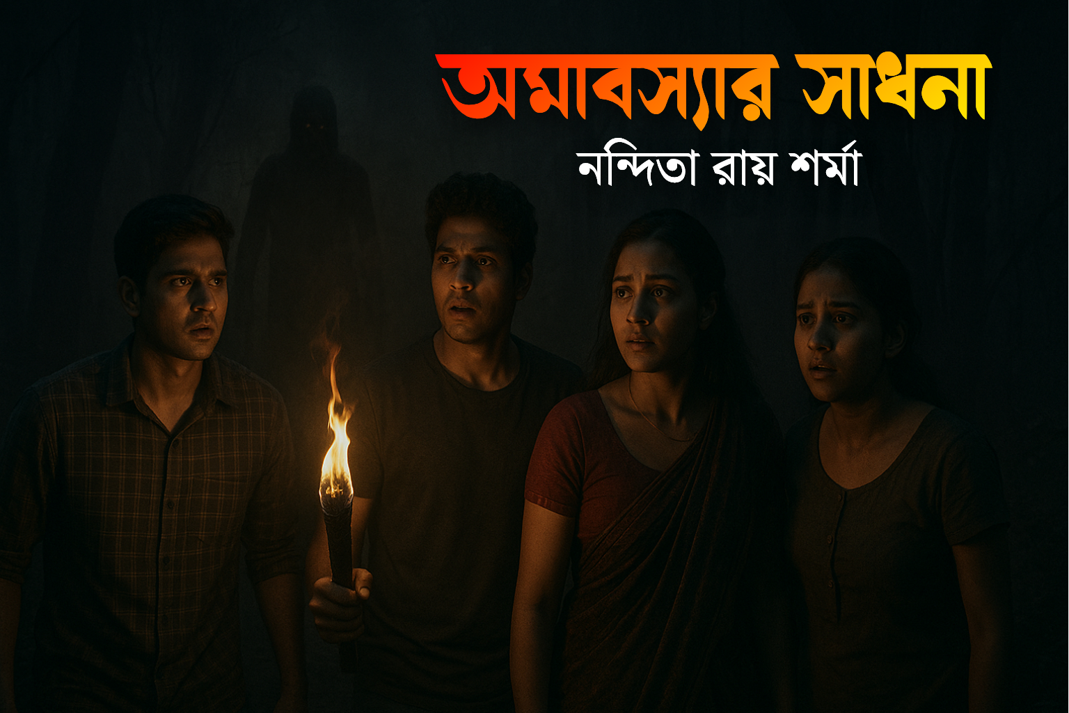 হঠাৎই, বাতাস কেঁপে ওঠে, গাছপালার ছায়া অদ্ভুতভাবে নাচতে শুরু করে, এবং মশালগুলো নিজেরাই নিভে যায়। তারা এক মুহূর্তের জন্য সম্পূর্ণ অন্ধকারে ঢাকা পড়ে। কালো ধোঁয়া চারপাশে ছড়িয়ে পড়ে, যা চোখে দৃশ্যমান না হলেও মনকে আতঙ্কিত করে। বন্ধুরা একে অপরের দিকে তাকায়, হাসাহাসি এবং মজা এক মুহূর্তের মধ্যে ভয়ঙ্কর সাড়া দিয়ে যায়। পূর্ণিমা হঠাৎ চিৎকার করে, আর সায়নী শক্তভাবে বন্ধুর হাত ধরে দাঁড়ায়। অভীক চেষ্টা করে ধৈর্য ধরে থাকার, কিন্তু তার কণ্ঠেও কম্পন থাকে। বিজয় সাহস দেখাতে চায়, কিন্তু তার চোখে ভয় প্রকাশ পায়। তান্ত্রিকের মন্ত্রপাঠের প্রতিটি শব্দ যেন বন্ধুরা অনুভব করতে পারে, তাদের মনে গভীর আতঙ্ক এবং অবিশ্বাসের সংমিশ্রণ তৈরি করে।