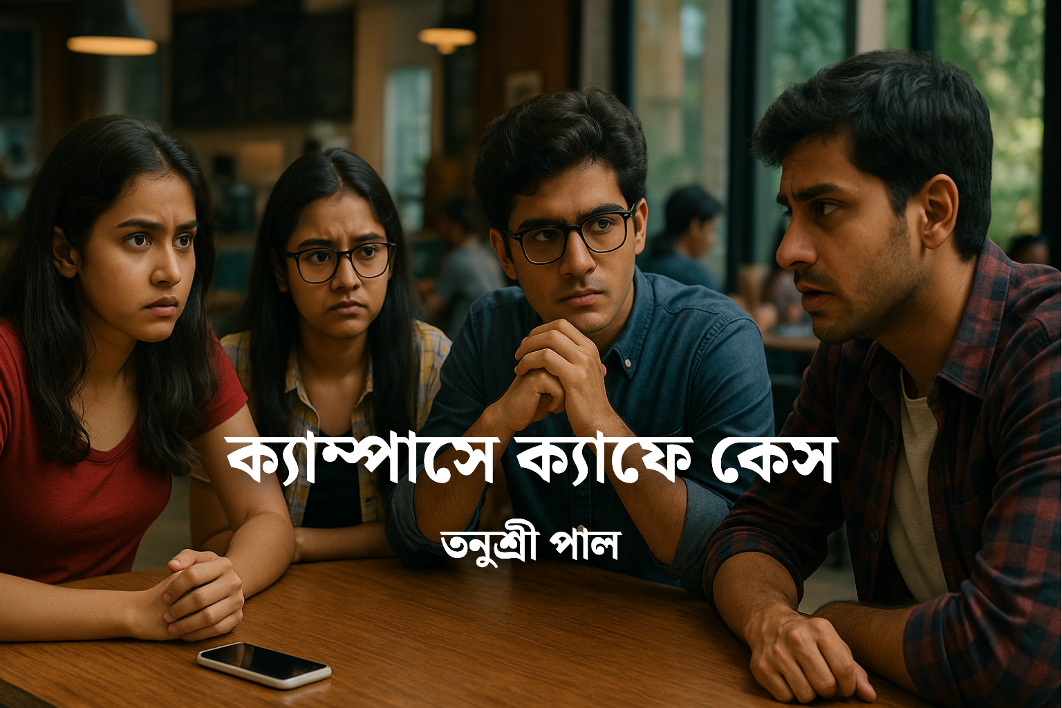 কলেজের দুপুরগুলো ছিল অন্য রকম—নীরব ক্লাসঘরের বাইরে যেন নতুন করে জীবন শুরু করত ক্যাম্পাস। গরমের গন্ধে ভরা বাতাস, ঢিলেঢালা হাঁটা, খোলা চুলে হাসতে থাকা মেয়েরা, আর সেই একটুখানি অলসতা—সব মিলিয়ে যেন দুপুরটা ক্যাম্পাসের প্রাণহীন দেওয়ালেও কিছু চঞ্চলতা ঢেলে দিত। দক্ষিণ কলকাতার এক সরকারি কলেজের প্রাণকেন্দ্র ছিল তার ক্যাফেটেরিয়া। এই ক্যাফে ছিল আধা-পুরনো, ছাদের পাখাগুলো একটু কেঁপে কেঁপে চলে, জানলার গায়ে লেগে থাকা ধুলোবালি রোদে চিকচিক করে, আর তার মাঝে থাকা টেবিলগুলোর প্রতিটিই যেন নিজস্ব এক গল্পবই। একপাশে সাদা দেয়ালে রঙিন চুনকামের মতো আঁকা কিছু কবিতা, একপাশে দাঁড়িয়ে থাকা চা-ওয়ালা বুবাইদা, যার হাসিমুখে চা পান করাটা ছিল এক অন্য অভিজ্ঞতা। এখানেই প্রতিদিন জড়ো হতো চার বন্ধু—সোহম, তৃণা, রুদ্র আর মিনু। এদের মধ্যে সোহম ছিল দলের মাথা, ইংরেজি বিভাগের ছাত্র, লেখালেখি করে, বক্তৃতা ভালোবাসে, আর কথাবার্তায় একধরনের গভীরতা আছে ওর। তৃণা সমাজবিজ্ঞানের ছাত্রী, তীক্ষ্ণ বুদ্ধিমত্তা আর সাহসী ভাবনা দিয়ে ও পুরো দলে এক রকমের ভারসাম্য এনে দিত। রুদ্র, গণিত বিভাগের ছাত্র, এমন এক মানুষ যে কথায় কথায় মজার জোক ছুঁড়ে দিয়ে যে কোনো পরিবেশ হালকা করে ফেলতে পারে, আর মিনু—ইতিহাসের মেয়ে, সবচেয়ে শান্ত, সবচেয়ে গভীর, সব কিছু নোট করে রাখা ওর স্বভাব। সেদিন দুপুরটাও শুরু হয়েছিল আগের মতোই। চারজন বসেছিল ক্যাফের মাঝের টেবিলটায়, তৃণার হাতে কফির কাপ, রুদ্র চায়ের সঙ্গে মুড়ি খাচ্ছে, আর সোহম ও মিনু তর্ক করছে এক নতুন সাহিত্য ম্যাগাজিন নিয়ে। হঠাৎ পাশের টেবিল থেকে একটা উত্তেজিত গলা শোনা গেল—”Guys! আমার ফোনটা নেই!” সবাই চমকে তাকালো। রোহান মালিক—কমার্স বিভাগের সবচেয়ে স্টাইলিশ ছেলে, যার মোবাইল ফোনটা ছিল অদ্ভুতভাবে দামী আর ব্যক্তিত্বময়, সে-ই চিৎকার করছিল। ওর মুখে ঘাম, চোখে আতঙ্ক। রোহান বারবার বলছে, “আমি এখানে বসেছিলাম… ফোনটা টেবিলেই রেখেছিলাম… মিনিট পাঁচেক আগে ছিল, এখন নেই! এটা কোনো দুষ্টুমি না, কেউ সত্যিই আমার ফোনটা চুরি করেছে।” মুহূর্তে ক্যাফেতে ছড়িয়ে পড়ল গুঞ্জন। কে নিল? কেন নিল? এটা কি মজা নাকি সত্যি কিছু লুকিয়ে আছে? এমন সময়ে ক্যাম্পাস যেন থেমে গেল। ক্যাফের ফ্যানের ঘোরাঘুরি, ক্যান্টিনের হাঁকডাক, সবকিছু স্তব্ধ হয়ে একটা মোবাইলের সন্ধানে দাঁড়িয়ে গেল। কিন্তু তখন কেউই বুঝে উঠতে পারছিল না, এই মোবাইল চুরির ঘটনা শুধু একটা যন্ত্র হারানোর কাহিনি নয়, বরং সেটা হবে সেই দরজা—যার পেছনে লুকিয়ে থাকবে বহু ক্লাসমেটের গোপন চরিত্র, সম্পর্কের টানাপোড়েন, আর এমন কিছু সত্য যা কাউকে কাউকে ভেঙে দেবে, কাউকে গড়ে তুলবে।
