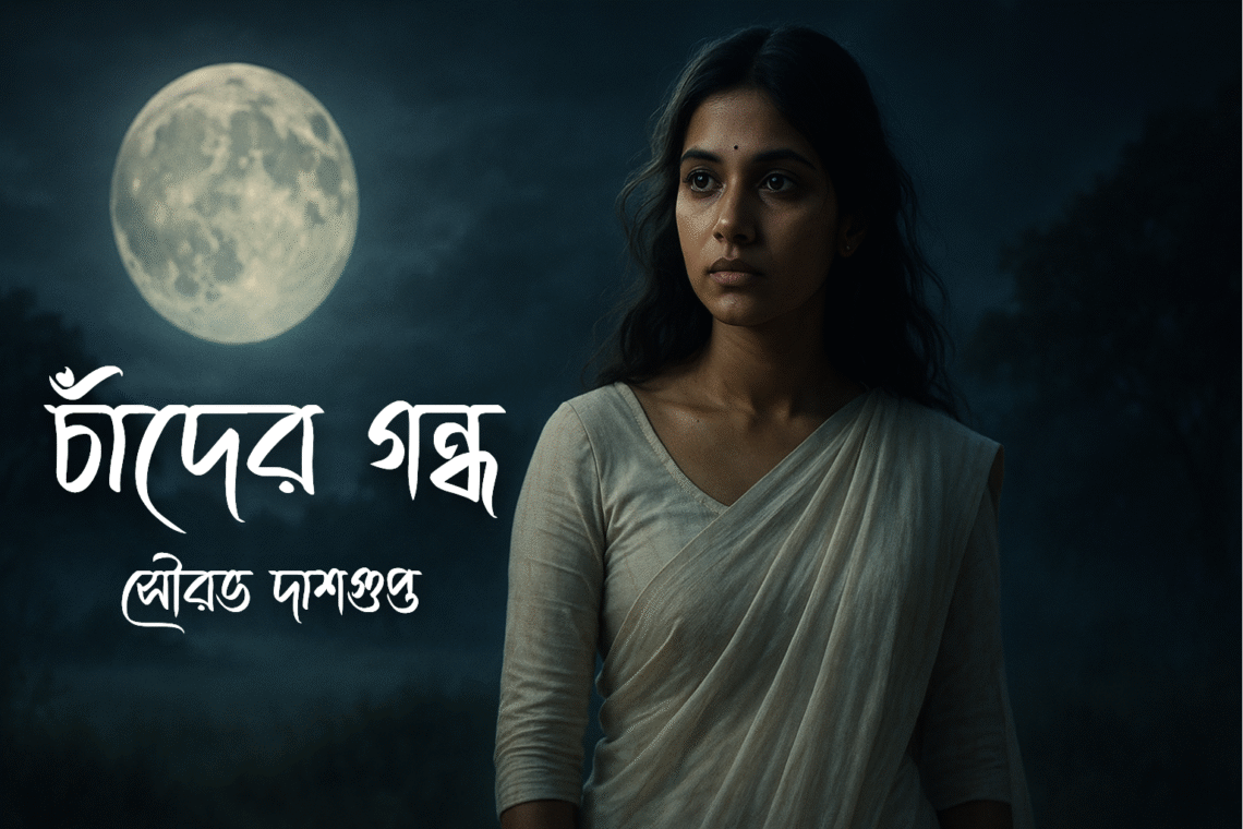 যখন দেবার্ঘ্য ঘুম ভাঙল, তখন সূর্য উঠেছে। বিছানার পাশে রাখা ডায়েরির পাতা উল্টে গেছে হাওয়ায়। সে চোখ খুলেই দেখল—পাশে রাখা টেবিলে একটা চিঠি। হাত কাঁপতে কাঁপতে সে চিঠিটা খুলল। ভিতরে লেখা মাত্র একটা লাইন: “আমি থাকব, চাঁদের গন্ধ হয়ে। লিখো, দেবার্ঘ্য।” তার চোখে জল চলে এল, কিন্তু সেই জলের মধ্যে এবার কোনো বিষণ্নতা ছিল না, ছিল এক অনির্বচনীয় প্রশান্তি। সে জানে, আর যতদিন সে লিখবে, তিলোত্তমা থাকবে। হয়তো বাস্তবের জগতে নয়, কিন্তু অনুভবের সীমানায়, প্রতিটি ছন্দের গভীরে। আর সেই থেকে, প্রতিটি পূর্ণিমা রাতে দেবার্ঘ্য জানালায় বসে কবিতা লেখে, আর আকাশ ভরে ওঠে এক অচেনা, তীব্র অথচ শান্ত চাঁদের গন্ধে।