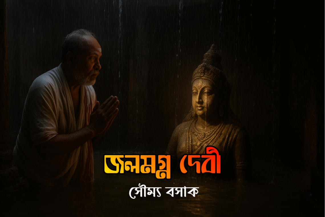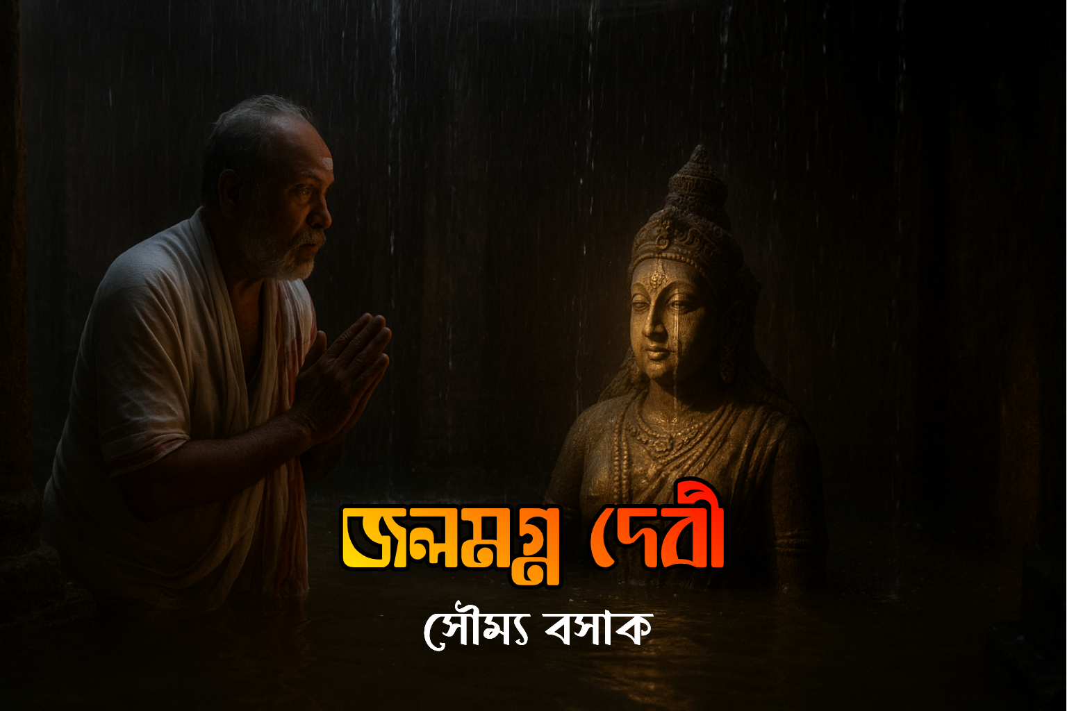 বর্ষার প্রথম বজ্রবিদ্যুতের ঝলকানির সঙ্গে সঙ্গে আকাশের বুক ফুঁড়ে যখন জলধারা নেমে আসে, তখনই পুরো গ্রাম যেন কেঁপে ওঠে সেই আওয়াজে। চারিদিকে গাছের পাতার ফাঁকে জমে থাকা ফোঁটা ঝরে পড়তে থাকে, কাদামাটি ভিজে যায় আর ছোট ছোট খালবিলগুলো ফুলে ওঠে। ঠিক তখনই, গ্রামের প্রাচীনতম স্থান—শিবতলার পাশে দাঁড়িয়ে থাকা মা মহামায়ার মন্দিরটিকে ঘিরে এক অদ্ভুত উত্তেজনা ছড়িয়ে পড়ে। মন্দিরের গর্ভগৃহ, যেখানে বছরের পর বছর দেবীর কালো পাথরের মূর্তি স্থাপিত আছে, বর্ষার প্রথম দিকেই জলে ভেসে যায়। মন্দিরের চৌহদ্দিতে দাঁড়িয়ে থাকা মানুষজন দেখে—গর্ভগৃহের পাটাতন পর্যন্ত জলে ডুবে যাচ্ছে, আর জ্যোৎস্নার মতো দীপশিখা ম্লান হয়ে উঠছে সেই স্যাঁতসেঁতে আবছায়ায়। গ্রামের প্রবীণরা একে অশুভ সংকেত মনে করতে থাকে, কেউ কেউ তো সরাসরি বলে ওঠে—“দেবী কাঁদছেন, তিনি দুঃখিত।” অচিরেই এই কথা গুজবের মতো ছড়িয়ে পড়ে, এবং বৃষ্টিভেজা রাতটিকে আরও রহস্যময় আর ভয়ের করে তোলে।