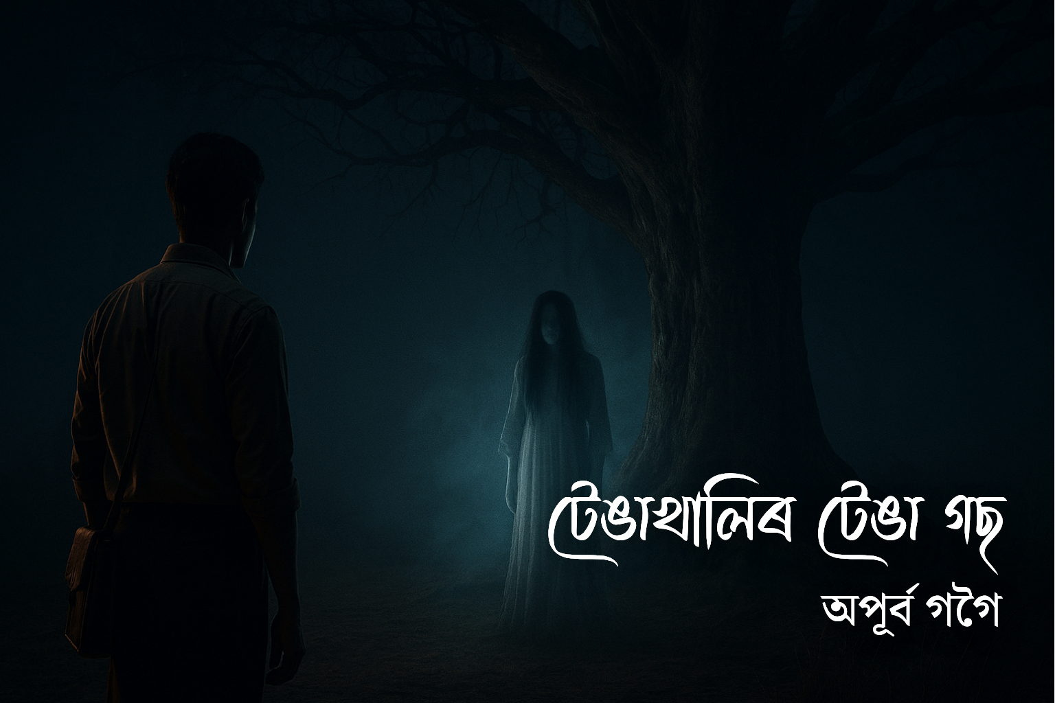 টেঙাখালিৰ নিশাবোৰ বেলেগ আছিল, বিশেষকৈ সেই পুৰণি টেঙা গছখনৰ চৌপাশে। ভয়ানক নিৰৱতা যেন গছটোৰ শিপাৰ পৰা ওলাই আহিছিল। চেনি বৰুৱাই স্কুলৰ কাম সমাধা কৰি নিজা কোঠালিত বহি নিজৰ নোটবুকখনত কেইটামান মন্তব্য লিখি আছিল—গছটোত দিনত বিশেষ একো দেখা নাযায়, কিন্তু ৰাতিপুৱাৰ সোঁতাহাতে লাগে যেন কিবা ঘটি থাকে। তেওঁ আজি পুৱা গাঁৱৰ মুৰব্বী ৰাজেন কাকাক লগ পাইছিল। ৰাজেন কাকাই ক’বলৈ চেষ্টা কৰিছিল—“এই গছটোত পঞ্চাশ বছৰৰ আগতে এক ঘটনা ঘটিছিল, যিটো পৰাই আমাৰ গাঁওখনৰ গাত লাগি ৰ’ল।” কিন্তু তেওঁৰ মুখ বন্ধ কৰিলে এটা অচিন ভয়—চেনিয়ে চকুত দেখিলে। ৰাজেন কাকাই শুধুমাত্র এটা নাম ক’লে—“গাংগুটী। গাংগুটী আছিল সেই গছত জুখা মৃত্যুৰ নাম।”