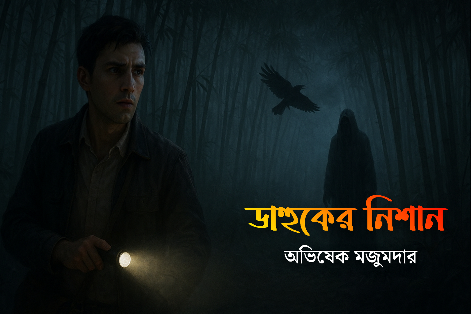 ঠিক তখনই সন্ন্যাসী আচমকা ঘুরে দাঁড়ালেন। অদ্বৈতের বুক ধক করে উঠল—যেন তিনি বুঝে গেছেন কেউ তাঁকে অনুসরণ করছে। তাঁর চোখ লাল জ্বলজ্বল করছিল, ঠোঁট নড়ছিল অবিরাম। পরক্ষণেই এক অদ্ভুত মন্ত্রোচ্চারণ শোনা গেল—শব্দগুলো অপরিচিত, অথচ কানে আসতে আসতেই মনে হচ্ছিল আগুনের মতো জ্বলছে। “ওঁ…ম্রিন…ঝুঁম…কারাল…” শব্দগুলো আছড়ে পড়ছিল বাঁশবনের নিস্তব্ধতায়, আর সঙ্গে সঙ্গে চারপাশের গাছগুলো অদ্ভুতভাবে দুলতে লাগল, যেন ঝড় উঠেছে। অদ্বৈতের কানে বাজছিল এক অস্বস্তিকর ঘন আওয়াজ, মনে হচ্ছিল মাথার ভেতর কেউ হাতুড়ি মারছে। তিনি টলতে টলতে গাছের আড়ালে সরে গেলেন। ক্যামেরা নামিয়ে দিলেন হাতে, কারণ সেই ভয়ঙ্কর পরিবেশে ছবি তোলার মতো সাহস আর অবশিষ্ট ছিল না। সন্ন্যাসীর মন্ত্রোচ্চারণ হঠাৎ করেই থেমে গেল। কয়েক মুহূর্তের নিস্তব্ধতা, তারপর আবার ভেসে এল ডাহুকের আর্তনাদ। অদ্বৈতের মনে হল, যেন এই ডাক এবার তাঁকেই উদ্দেশ্য করে আসছে। তিনি প্রাণপণে দৌড়ে বাঁশবন থেকে বেরিয়ে এলেন। বুক ধড়ফড় করছিল, শ্বাস নিতে কষ্ট হচ্ছিল। পিছনে তাকাতে সাহস পেলেন না, কিন্তু মনে হচ্ছিল অদৃশ্য চোখ জ্বলজ্বল করে তাঁকে লক্ষ্য করছে। সেই রাতে তিনি স্পষ্ট বুঝলেন—এই গ্রামের রহস্য কেবল পাখির ডাক বা গ্রামবাসীর কুসংস্কার নয়, এর পেছনে লুকিয়ে আছে এক ভয়ঙ্কর শক্তি, এক রহস্যময় সন্ন্যাসীর উপস্থিতি, যার মন্ত্রের প্রতিধ্বনি তাঁর কান থেকে কোনোদিন মুছে যাবে না।