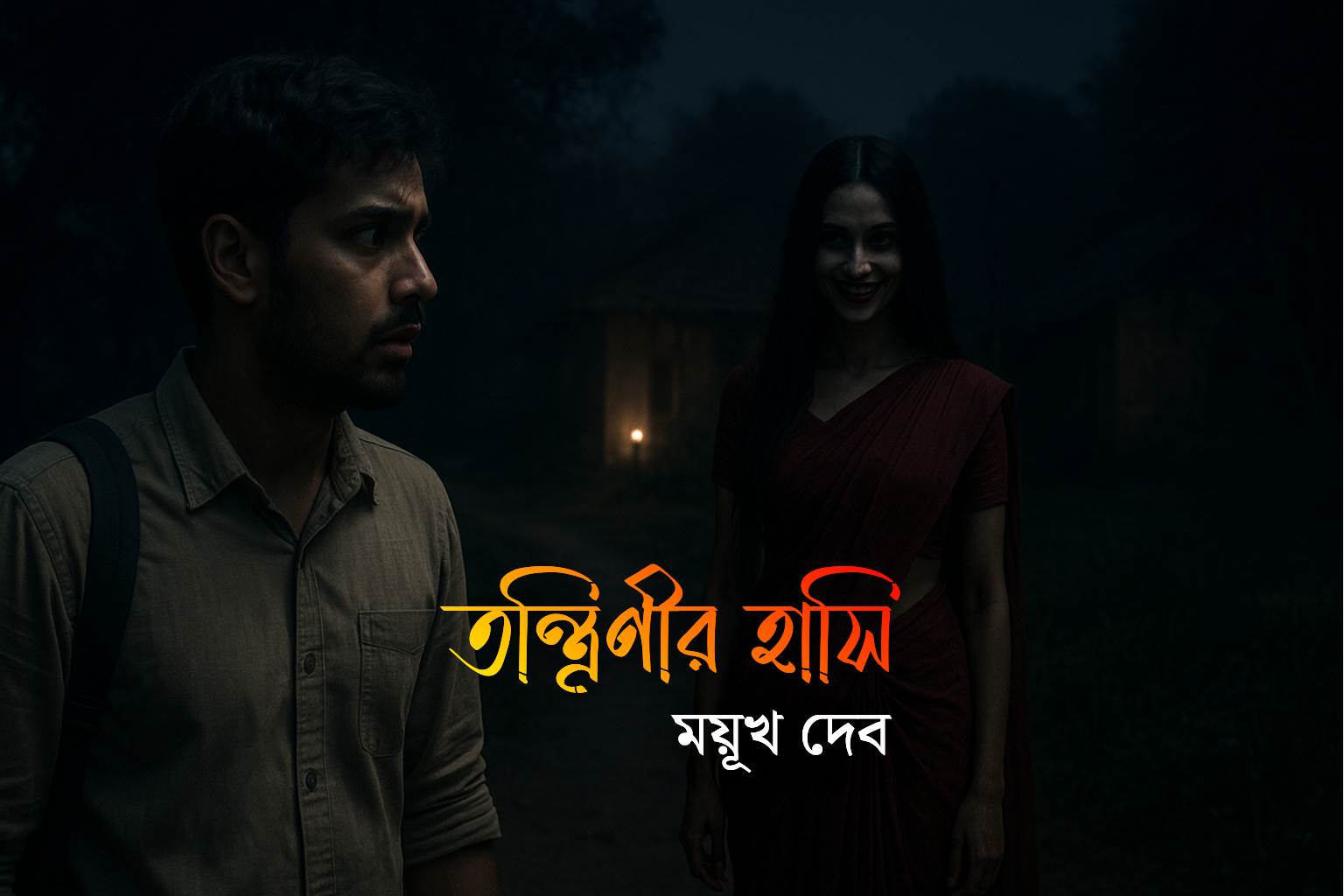 রাতের অন্ধকার যখন গ্রামের কোল ঘিরে নেমে আসে, তখন সবকিছু যেন শান্তির জাল ছড়িয়ে দেয়। ঘুমন্ত গ্রামবাসীর মধ্যেই হঠাৎ একটি অদ্ভুত হাসির শব্দ ভেসে আসে বাতাসে, যা এতটাই রহস্যময়ী যে কেউ সঠিকভাবে বোঝে না এটি কার। কেউ বলছে, এটি দেবীর হাসি, যা গ্রামের লোকদের নিরাপত্তা এবং আশীর্বাদ দেয়; আবার কেউ বলে এটি একটি দুষ্টু পিশাচিনীর হাসি, যা রাতের অন্ধকারে মানুষের মন দানবীয়ভাবে কাঁপিয়ে তোলে। হাসিটি কোনোটিই নয়, বরং এক অদৃশ্য শক্তির আবহ, যা গ্রামের প্রতিটি ঘরে অচেনা ভাবনা এবং অশান্তি সৃষ্টি করে। গ্রামের কিছু বুড়ো বলেন, “এই হাসি আমাদের পূর্বপুরুষদের স্মৃতি নিয়ে আসে। কেউ যদি হঠাৎ শুনে, সে বুঝতে পারবে না তা সত্য নাকি ভয়ঙ্কর কল্পনা।” অন্যদিকে, যুবকরা হাসি শুনে কৌতূহল এবং ভয় দুই-ই অনুভব করে। বাতাসে ভেসে আসা হাসি যেন তাদেরকে গ্রামে টেনে আনে, তবে কোথা থেকে এসেছে, তা কেউ জানে না। শিশুরা ঘরে ঢুকে কান চাপিয়ে রাখে, নারীরা ঘরের দরজা আঁটিয়ে দেয়, আর পুরুষরা নানা ধরনের শখের কথা বলে নিজেদের সাহস পরীক্ষা করতে চায়। এই হাসি শুধু শব্দ নয়, বরং এক ধরনের অভ্যন্তরীণ কম্পন, যা গ্রামকে এক অদৃশ্য চুম্বকের মতো আকর্ষণ করে এবং রাতের নীরবতাকে ভাঙতে ভাঙতে একটি নতুন গল্পের সূচনা করে।