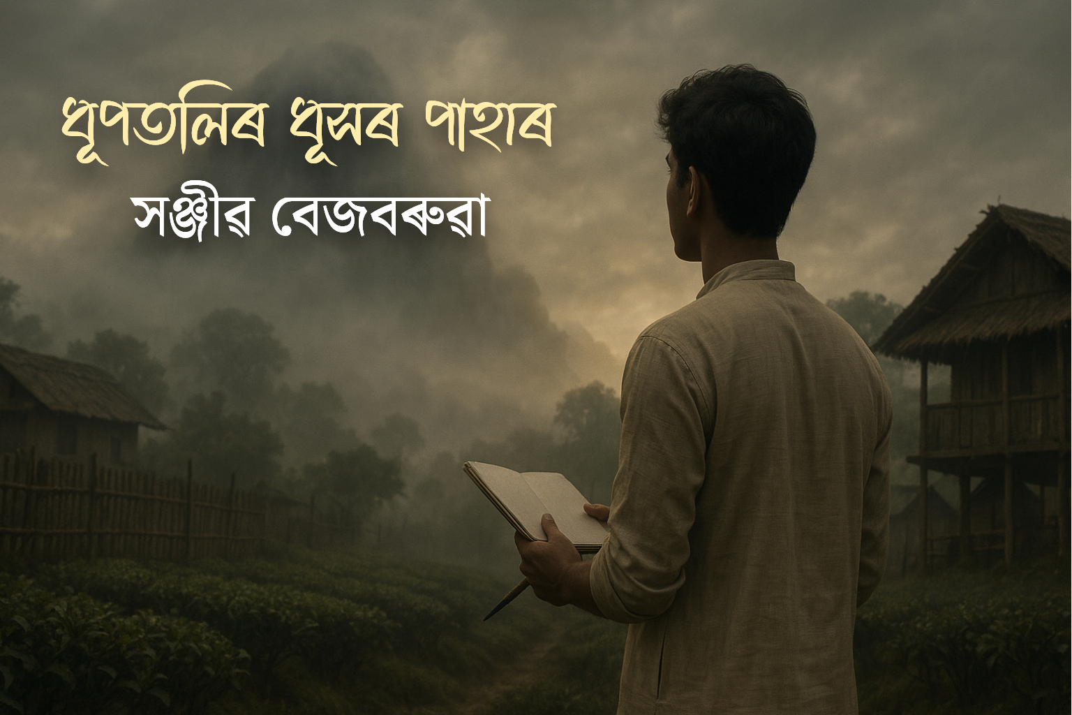 ধূপতলিৰ গাঁওখন যেন বহুবছৰৰ ধুমুহাৰ পৰ আৰু ওলালেও এখন গহীন, থমকি থকা নিঃশব্দ নদী। সময় ব’হাগৰ উম মেলিছে, শালগছবোৰ নতুন পাতেৰে জীপাল, কেতেকীৰ সুৰে বতাহ ভৰে, কিন্তু গাঁওখনৰ একোণতে যেন বেছিকৈ ৰৈ থাকে পাহাৰৰ ছাঁ—অদৃশ্য, অথচ উপস্থিত। অপূৰ্বা আৰু ৰূপম পাহাৰৰ সন্ধানত থকা সময়ত গাঁওবাসীয়ে চকুলে দেখিলেও, বুজিবলৈ চেষ্টা নকৰিলে। পাহাৰৰ নাম শুনিলেই কোনোবাই মুখ দাঙি চায়, কোনোবাই পলমকৈ গধূলিৰ কাষে গুচি যায়।