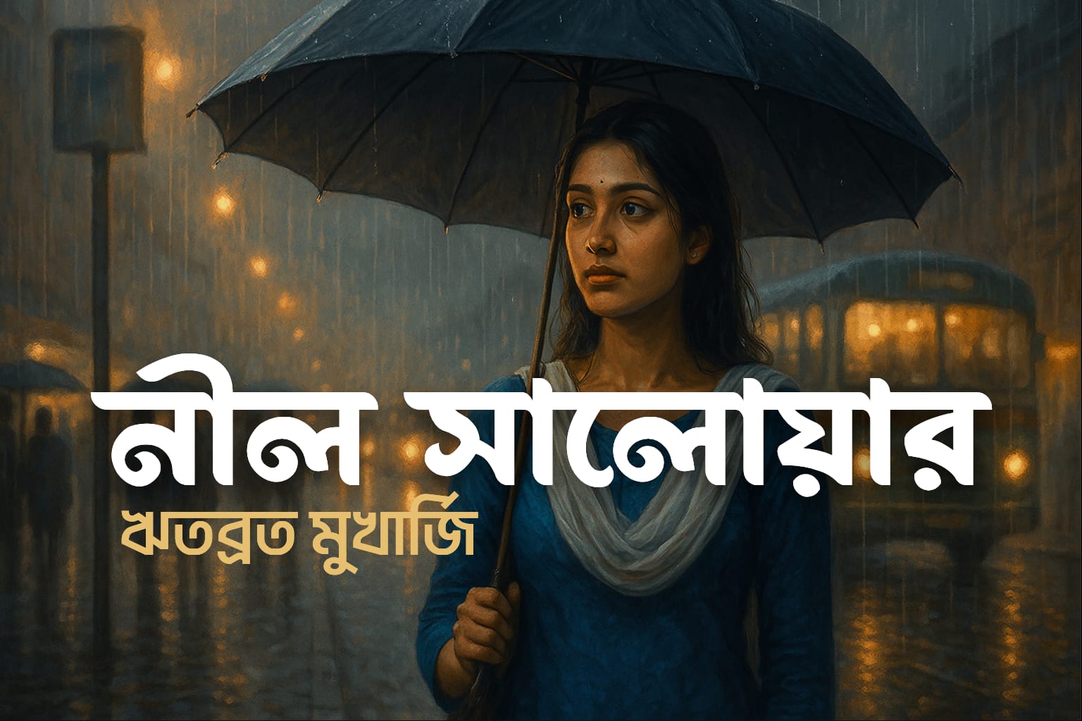 বাসস্ট্যান্ডে এসে দাঁড়াতেই চোখে পড়লো তাকে। নীল সালোয়ার পরে, কাঁধে ভেজা চুল ঝুলছে, একহাতে কালো ছাতা, তবু বৃষ্টির ফোঁটা তাকে যেন রেহাই দিচ্ছিল না। যেন ছাতার আড়াল থেকেও বৃষ্টি তাকে ছুঁয়ে ফেলছিল বারবার। তার চোখদুটো ছিল একেবারে সামনে, কিন্তু মনে হচ্ছিল যেন খুব দূরে তাকিয়ে আছে—হয়তো অন্য কোথাও, অন্য কারও দিকে।