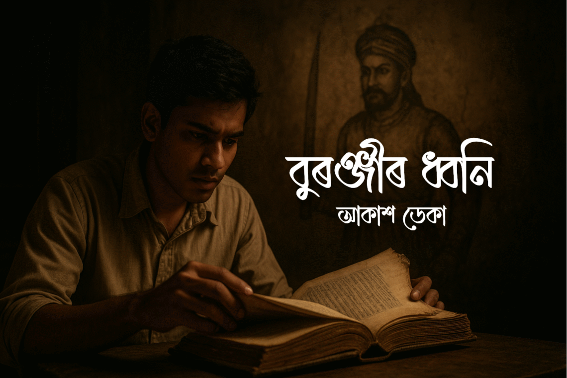 ৰাতিপুৱা গাঁওখন ঘন কুয়াশাত মেৰাই ধৰা অৱস্থাত অৰুণ বুৰঞ্জীটোৰ পাত উলটাই চাইছিল। এইবাৰ পাতবোৰে নিছৰাই সৰি যোৱাৰ লগে লগে কাষৰ দেউলটোৰ অন্ধকাৰ ভিতৰৰ পৰা যেনে এক গম্ভীৰ সুৰ উঠি আহিল। সেই সুৰত কেতিয়াবা ঢোলৰ মৃদু তাল, কেতিয়াবা বাঁহীৰ দীর্ঘশ্বাসৰ দৰে শব্দে মিহলি হ’ল। অৰুণৰ বুকুৰ ধুকপুকনি বাঢ়ি গ’ল—কাৰণ এইবাৰ সুৰ কেৱল সংগীত নহয়, স্পষ্টভাৱে কণ্ঠত পৰিণত হ’ল। কণ্ঠটো গম্ভীৰ, শক্তিশালী, কিন্তু একেটা সময়তে বিষাদেৰে ভৰা। অৰুণৰ চকুত ভাসি উঠিল এখন অচিন ছবিৰ আভা, য’ত এগৰাকী যোদ্ধা যুদ্ধক্ষেত্ৰৰ ধূলি-মাটিত দণ্ডায়মান। সেই যোদ্ধাই নিজকে পৰিচয় কৰিলে—“মই ৰণবীৰ।” অৰুণৰ বুকু ঠেকি গ’ল। তেওঁ বুজিলে, এই বুৰঞ্জীৰ শব্দবোৰে শেষত ইতিহাসৰ অন্ধকাৰৰ পৰা জীয়াই তোলা এক আত্মাৰ সৈতে তেওঁৰ সাক্ষাৎ ঘটাইছে। কণ্ঠটোৱে স্পষ্টকৈ ক’লে—“মোৰ নাম কেতিয়াও মূলধাৰাৰ কিতাপত লিখা নহ’লেও, মোৰ যুঁজ, মোৰ ত্যাগ, মোৰ দেশপ্ৰেম—ইতিহাসৰ প্ৰৱাহত সত্য হিচাপে বহি আছে।”