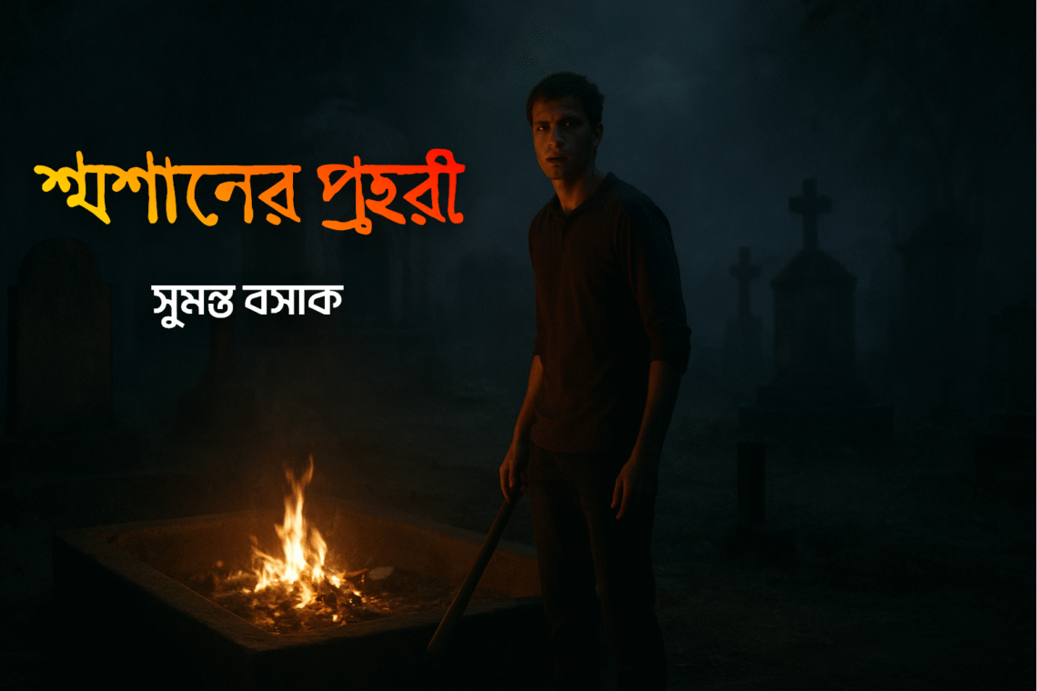 চাকরির প্রথম দিন বিকেলেই সে পৌঁছল শ্মশানে। হাতে কেরোসিনের লণ্ঠন, সঙ্গে মুন্সির দেওয়া লাঠি। সন্ধ্যার আকাশ লালচে অন্ধকারে ঢেকে গেছে, বটগাছের পাতা দিয়ে হাওয়ার সোঁ সোঁ শব্দ আসছে। শ্মশানের মধ্যে ঢুকতেই অনির্বাণের মনে হলো জায়গাটা যেন অন্য জগৎ। চারদিকে অদ্ভুত নীরবতা, মাঝে মাঝে শুধু ঝিঁঝিঁ পোকার ডাক। দূরে একটা অর্ধেক জ্বলা চিতা তখনও ধিকিধিকি করে জ্বলছিল, ধোঁয়া কুণ্ডলী পাকিয়ে আকাশের দিকে উঠছিল। অনির্বাণ মনে মনে নিজেকে শক্ত করল, লণ্ঠনটা পাশে রেখে ছোট্ট ঘরে বসে পড়ল। কাজের নিয়ম সহজ—রাতভর টহল দিতে হবে, ভোর হলে বাড়ি ফেরা। সে ভাবল, এটা তেমন কিছু নয়, একরকম পাহারা দেওয়া। কিন্তু মন তার মানতে চাইছিল না। বুকের মধ্যে হালকা আতঙ্ক জমে উঠেছিল, মনে হচ্ছিল কেউ হয়তো তাকে অন্ধকার থেকে নিরবে দেখছে। শ্মশানের গন্ধ, বাতাসের ভারী নিস্তব্ধতা আর দূরের আগুনের আলো—সব মিলিয়ে প্রথম রাতটা অনির্বাণের জীবনের সবচেয়ে অস্বস্তিকর রাতের সূচনা হয়ে দাঁড়াল।