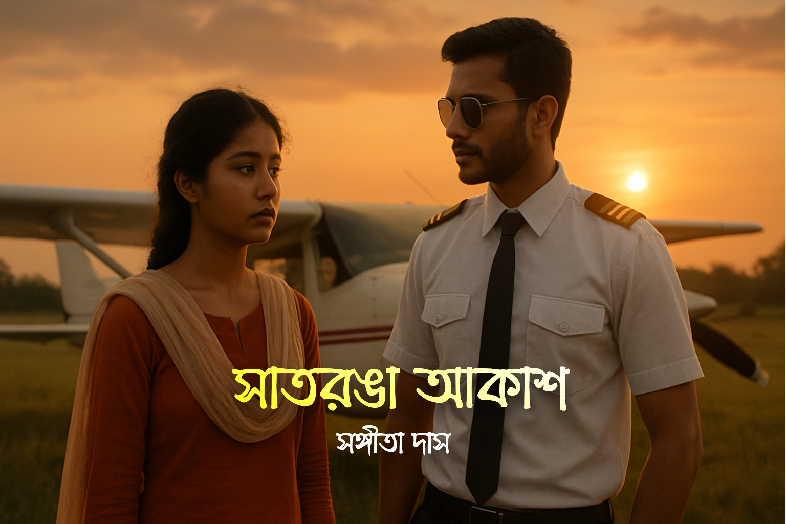 মেঘলার শৈশব কেটেছে পশ্চিমবঙ্গের এক প্রত্যন্ত গ্রামে, যেখানে কাঁচা রাস্তা, বিস্তীর্ণ ধানের মাঠ আর দিগন্ত পর্যন্ত ছড়িয়ে থাকা আকাশ তার শৈশবের নিত্যসঙ্গী। সকালবেলা কাকডাকা ভোরে মাটির ঘরের জানালা দিয়ে ঢুকে পড়া আলোয় সে ঘুম ভাঙত, আর সবচেয়ে প্রিয় সময় ছিল সন্ধ্যা। গ্রামের খোলা মাঠে দাঁড়িয়ে সে আকাশের দিকে তাকিয়ে থাকত ঘণ্টার পর ঘণ্টা। তার বাবার একটি পুরোনো রেডিও ছিল—যার শরীর ক্ষয়ে গেছে, অনেক সময় স্ট্যাটিক আওয়াজের ভেতরেই কণ্ঠ শোনা যেত। সেই রেডিওতে কখনো হঠাৎ বিমান চলাচলের খবর, কখনো বেতারে ভেসে আসা এয়ার ট্রাফিক কন্ট্রোলের ভাঙাচোরা সিগন্যাল শোনার সময় তার চোখ দুটো জ্বলজ্বল করে উঠত। সে জানত না কীভাবে বা কেন, কিন্তু সেই শব্দগুলো তার হৃদয়ে ডানা মেলাত। গ্রাম্য শিশুদের অনেকেই মাঠে দৌড়াদৌড়ি করত, ঘুড়ি ওড়াত, কিন্তু মেঘলা এক অদ্ভুত টান অনুভব করত আকাশের প্রতি। যখনই সে উড়োজাহাজের সাদা রেখা টেনে নিয়ে যাওয়া ট্রেইল আকাশে দেখতে পেত, তার মনে হতো—একদিন সে-ও সেই আকাশে ভেসে বেড়াবে, গ্রাম ছেড়ে উড়ে যাবে অজানা শহরে, অচেনা দেশে। তার স্বপ্নকে গ্রামের অন্য শিশুরা কখনো মজা করে উড়িয়ে দিত, বলত—“মেঘলা পাগল, আকাশে কি কারো ঘর বাঁধা যায়?” কিন্তু মেঘলার বিশ্বাস ভাঙত না। সে প্রতিদিনের জীবনের কষ্ট, নোংরা পুকুর, কাঁচা রাস্তার ধুলো সব ভুলে এক অদ্ভুত জেদ নিয়ে আকাশের দিকে তাকিয়ে থাকত। তার কাছে আকাশ মানে ছিল মুক্তি, সীমাহীন সম্ভাবনা, এমন এক মঞ্চ যেখানে গরিব-ধনী, গ্রাম-শহর, মেয়ে-ছেলের কোনো ভেদাভেদ নেই।