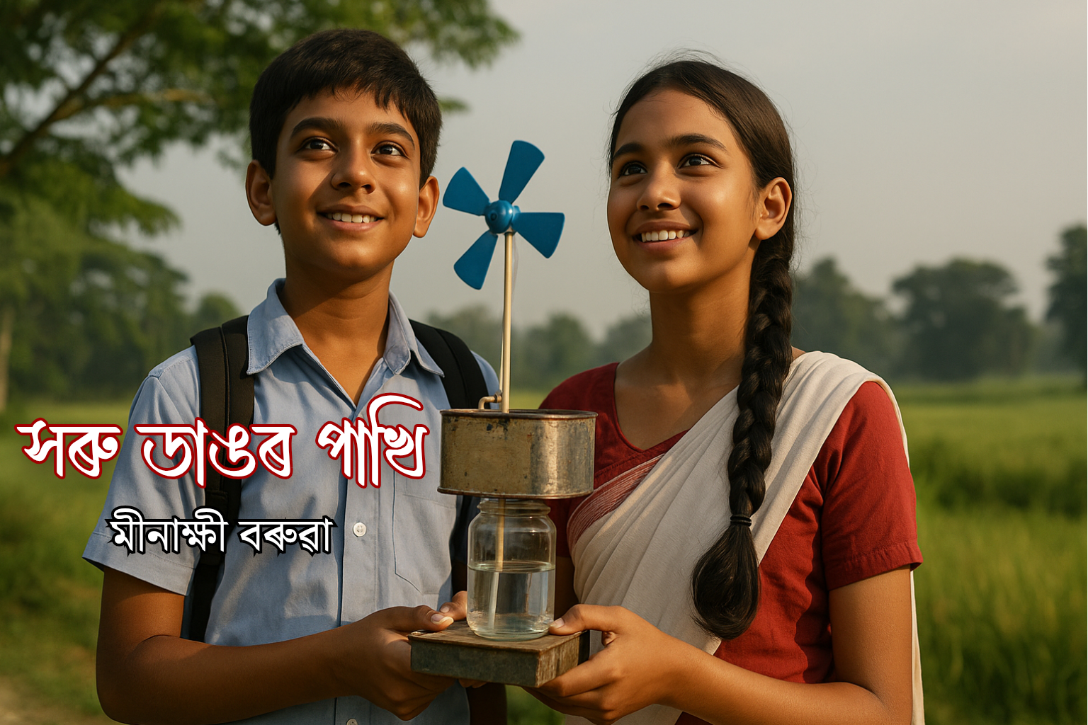 মেলালৈ যাওঁতে তেওঁলোকৰ সৈতে এইবাৰ স্কুলৰ ৫টা কণমানি ছাত্ৰ-ছাত্রীও আছিল — তেওঁলোক “Mini Innovators” দলৰ অংশ। গুৱাহাটীত বাছৰ পৰা নামি, এখন খোলা মাঠৰ মাজেদি মেলাৰ পেণ্ডেললৈ গৈ থাকোতেই হেমন্তৰ মনেৰে অলপ পিছলৈ ঘূৰি গৈছিল — সিহঁতৰ প্ৰথম মেলাৰ দিন, পাখি ঘূৰাই পানী সঁচা কৰি থকা দিনটো, য’ত বিদ্যুৎ নাছিল, কিন্তু ইচ্ছা আছিল। আৰু এতিয়া, তেওঁলোকৰ পিছে পিছে আহি থকা সৰুসৰিলাৰ দলটোক চালে — হাঁহি-গানত ভৰা, চকুত দীপ্তি থকা। চাঁদনীয়ে অলপ আঁতৰাই চালে — বতাহৰ সৈতে সেউজ পতাকাবোৰ কপৌফুলৰ দৰে উৰি আছিল। সি মনতে ভাবিলে, “সঁচাকৈয়ো পাখিবোৰেই মাথোঁ উৰে নে? সপোনো উৰে, যদি সাহস থাকে।”