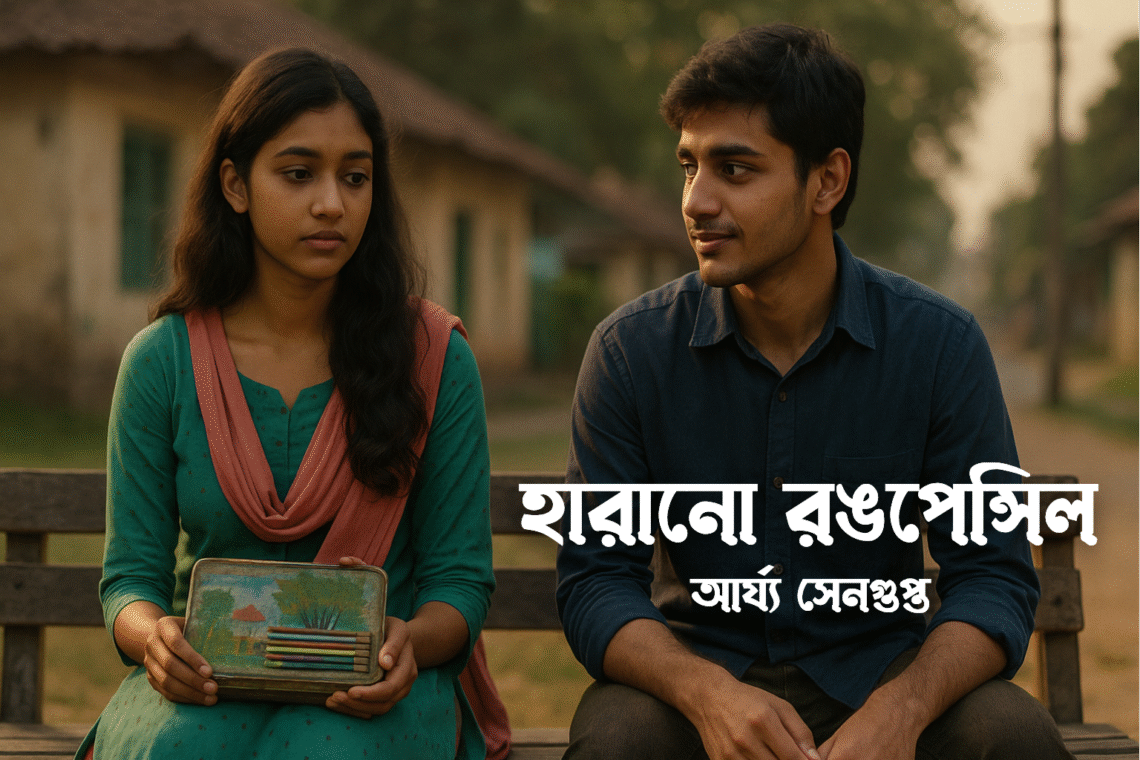 সেদিন সূর্যাস্তের রঙে ভিজে থাকা আকাশের নীচে মেঘলা দাঁড়িয়ে ছিল নিজের প্রিয় রঙপেন্সিলকে বুকে টেনে, আর পাশে চুপচাপ দাঁড়িয়ে ছিল অর্ণব। তাদের মাঝে তখনও কোনো ঘনিষ্ঠতা তৈরি হয়নি, কিন্তু এক অদ্ভুত উষ্ণতার স্রোত বয়ে গিয়েছিল। মেঘলা ভাবল—এই ছেলেটি চুপচাপ হলেও কত যত্নশীল, কত আলাদা সবার থেকে। তার মনে হচ্ছিল যেন দাদুর হাতের ছোঁয়া আবার ফিরে এসেছে অর্ণবের মাধ্যমে। চোখের কোণে অশ্রু জমলেও মেঘলা মৃদু হেসে বলল, “ধন্যবাদ, তুমি জানো না এটা আমার কাছে কতটা গুরুত্বপূর্ণ।” অর্ণব শুধু মাথা নেড়ে সামান্য হেসে উঠল, যেন কিছুই হয়নি। কিন্তু সেই মুহূর্তে মেঘলা বুঝে গেল—কিছু বন্ধুত্ব কিংবা সম্পর্ক এমনভাবে শুরু হয়, যখন কেউ আমাদের গভীর দুঃখের মুহূর্তে হাত বাড়িয়ে দেয়। তার রঙপেন্সিল ফিরে পাওয়ার আনন্দের চেয়ে বেশি সে উপলব্ধি করল—তার জীবনে এক নতুন মানুষের উপস্থিতি আস্তে আস্তে জায়গা করে নিচ্ছে।