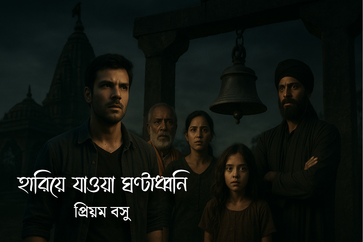 কিন্তু এক রাতে, সবকিছু বদলে গেল। সেই রাতটাও শুরু হয়েছিল অন্য দিনের মতোই। আকাশে মেঘ ছিল না, জোৎস্নায় চারদিক ভেসে যাচ্ছিল। গ্রামের মানুষজন নিজেদের উঠোনে বসে গল্প করছিল, কেউ কেউ ছেলেমেয়েদের শুইয়ে দিয়েছে, কেউ আবার মাটির প্রদীপ নিভিয়ে ঘুমিয়ে পড়েছে। কিন্তু রাত বারোটা বাজতেই, যখন সবাই প্রত্যাশা করছিল মন্দিরের সেই চেনা ঘণ্টাধ্বনি কানে আসবে, তখন হঠাৎ করে নিস্তব্ধতা নেমে এলো। মন্দিরের ঘণ্টা বেজে উঠল না। প্রথমে কেউ ব্যাপারটা খেয়ালই করেনি, কারও মাথায় আসেনি যে কয়েকশো বছরের এই নিয়ম ভেঙে যেতে পারে। কিন্তু ধীরে ধীরে গ্রামের মানুষজন খেয়াল করল—কোথাও কোনো শব্দ নেই। কুকুর ডাকছে না, পুকুরের ব্যাঙ ডেকে উঠছে না, এমনকি রাতের ঝিঁঝিঁ পোকার আওয়াজও যেন স্তব্ধ হয়ে গেছে। বাতাসেও যেন এক অদ্ভুত ভারী চাপ নেমে এসেছে, শ্বাস নিতে কষ্ট হচ্ছিল। যে পরিবারগুলো আগে কখনো এই ঘণ্টার শব্দ মিস করেনি, তারা হঠাৎ আতঙ্কিত হয়ে একে অপরের মুখ চাওয়া-চাওয়ি করতে লাগল। অনেকেই বলল—হয়তো পুরোহিত ঘণ্টা বাজাতে ভুলে গেছেন, আবার কেউ ফিসফিস করে বলল—“না, এই ঘণ্টা তো মানুষ বাজায় না… এ তো নিজে থেকেই বাজে…”। সন্দেহ, ভীতি আর অস্বস্তি গ্রামজুড়ে ছড়িয়ে পড়ল।