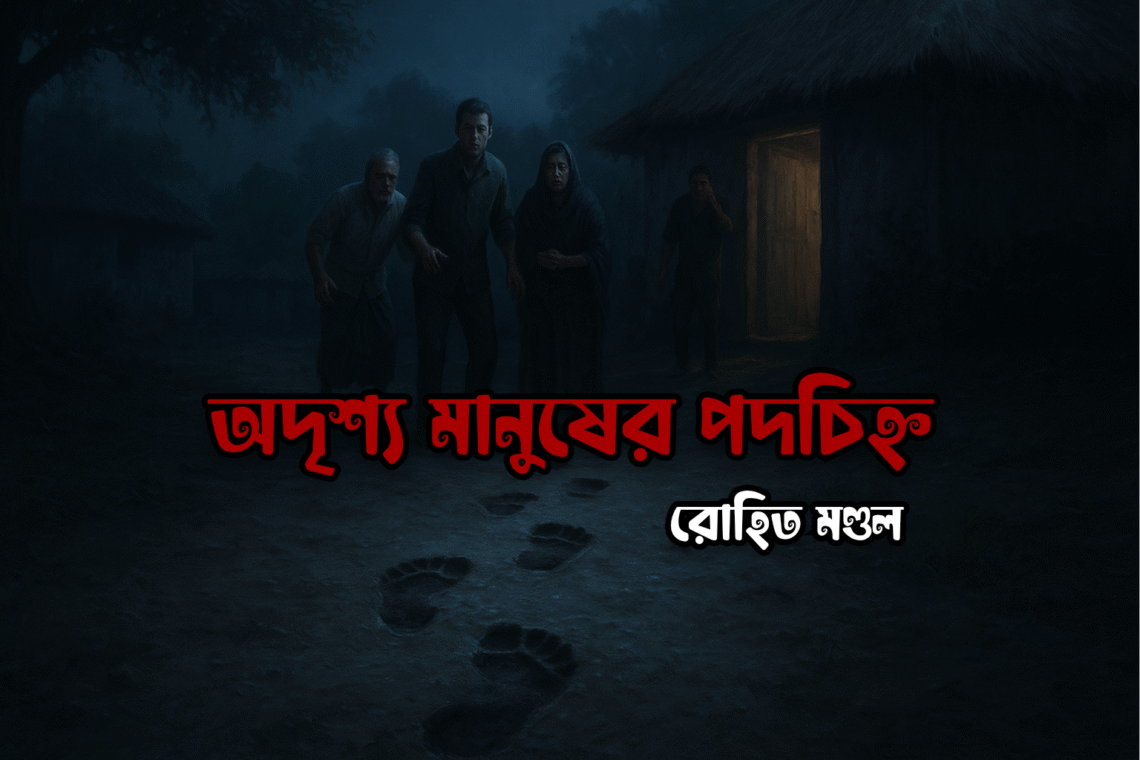 রোহিত মণ্ডল অধ্যায় ১: রাতের আতঙ্ক গ্রামের নাম শান্তিপুর, চারপাশে সবুজ ধানক্ষেত, বাঁশঝাড় আর মাঝখানে কুঁড়েঘর ঘেরা এক উঠোন। দিনের বেলায় এখানে হাসি, আড্ডা আর পাখির কলতান শোনা যায়, কিন্তু রাতে পরিবেশ বদলে যায় সম্পূর্ণ। রাত যত গভীর হয়, ততই নীরবতা যেন জমাট বাঁধে; কেবল ঝিঁঝিঁ পোকার ডাক আর দূরের শেয়ালের হুক্কাহুয়া শব্দ ভেসে আসে। সেই রাতে, পূর্ণিমার আলো মেঘে ঢাকা থাকলেও গ্রামটায় এক অদ্ভুত অস্বস্তি ছড়িয়ে ছিল। ভোরের দিকে প্রথম আলো ফোটার আগেই অদ্ভুত এক দৃশ্য দেখা গেল—গ্রামের মাঝের উঠোন জুড়ে লম্বা লম্বা মানুষের পায়ের ছাপ। যেন কেউ রাতভর হাঁটাহাঁটি করেছে, কিন্তু সেই পায়ের ছাপ কোথাও গিয়ে শেষ হয়নি,…