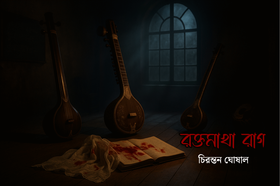 চিরন্তন ঘোষাল অধ্যায় ১: বীণারম্ভার শেষ স্বর সকালটা ছিল অদ্ভুতভাবে নিস্তব্ধ, যেন আকাশও গানের কোনো কষ্টসুর বয়ে আনছে। সংগীত বিদ্যালয় ‘শ্রুতি নিকেতন’-এর লালটিপ দেওয়া পুরনো দোতলা ভবনটিকে ঘিরে ভোরের আলো একটু একটু করে পড়ছিল, কিন্তু আজ যেন কিছু একটা ঠিক নেই—হোস্টেল রান্নাঘরের ধোঁয়া উঠছে না, পাখিরা চুপচাপ বসে আছে তুলসিতলায়, আর সবচেয়ে অদ্ভুত, মন্দির ঘর থেকে কোনো রাগ বাজছে না। সকাল সাতটা নাগাদ, ছাত্রীরা একে একে উঠতে শুরু করে। বীণারম্ভা আজও উঠেনি—তাতে কেউ প্রথমে অবাক হয়নি, কারণ সে মাঝেমাঝে গভীর রাত পর্যন্ত রেওয়াজ করত। তবে যখন তিষাণী দরজা ধাক্কায়, কোনো সাড়া না পেয়ে জানালার কাচে উঁকি দেয়, তখন সে চেঁচিয়ে…