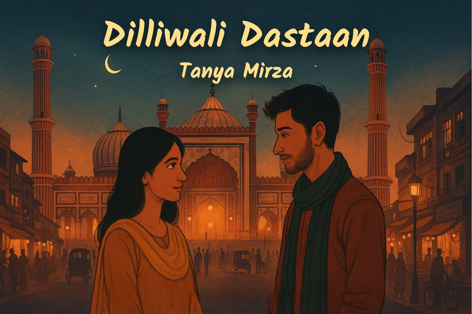 The sky above Jama Masjid shimmered in twilight hues—an indigo velvet splashed with saffron and gold, as if Delhi herself was bidding farewell to two lovers born under her dome-studded skies.