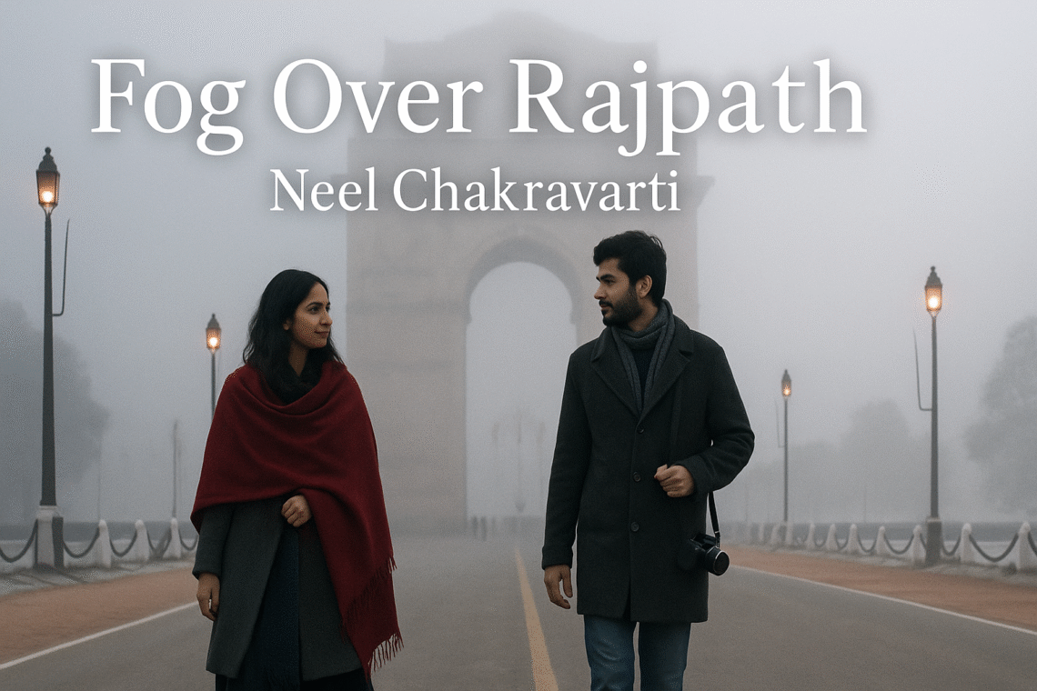 When evening fell, the temperature dropped again. Kabir wandered toward Rajpath, drawn by instinct. The grand boulevard stretched out like an endless corridor of mist. The Rashtrapati Bhavan was a suggestion in the distance, its dome faint as a mirage. Streetlamps formed glowing orbs, each circle of light immediately swallowed by darkness beyond. His footsteps echoed on the empty expanse. The air smelled of smoke from burning leaves, sharp and almost bitter.