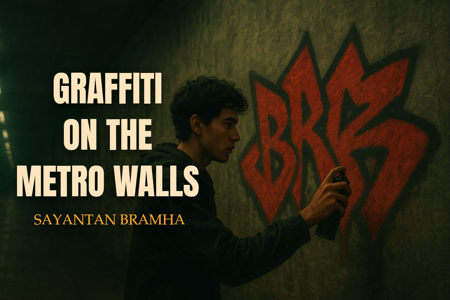 The evening air in Kolkata’s metro station carried its usual blend of dust, damp concrete, and faint echoes of hurried footsteps. Soumya’s heart pounded as he stood with a spray can hidden inside his backpack, waiting for the crowd to thin. Riya leaned against a pillar, eyes sharp and excited, tapping her phone screen nervously while pretending to scroll. Sam and Tanya were already whispering about colors, their hushed giggles bouncing off the walls. Imran, tall and quiet, kept scanning the platform with the kind of vigilance that made him look older than his years. For weeks they had toyed with the idea, and tonight, for the first time, they had gathered the courage to do it—leave their mark on a wall that had never been theirs. The metro station, half-lit and buzzing with the occasional announcement, felt like a stage where danger and art were about to collide. As Soumya pulled out the first can and shook it, the metallic rattle seemed to silence even the city above them.