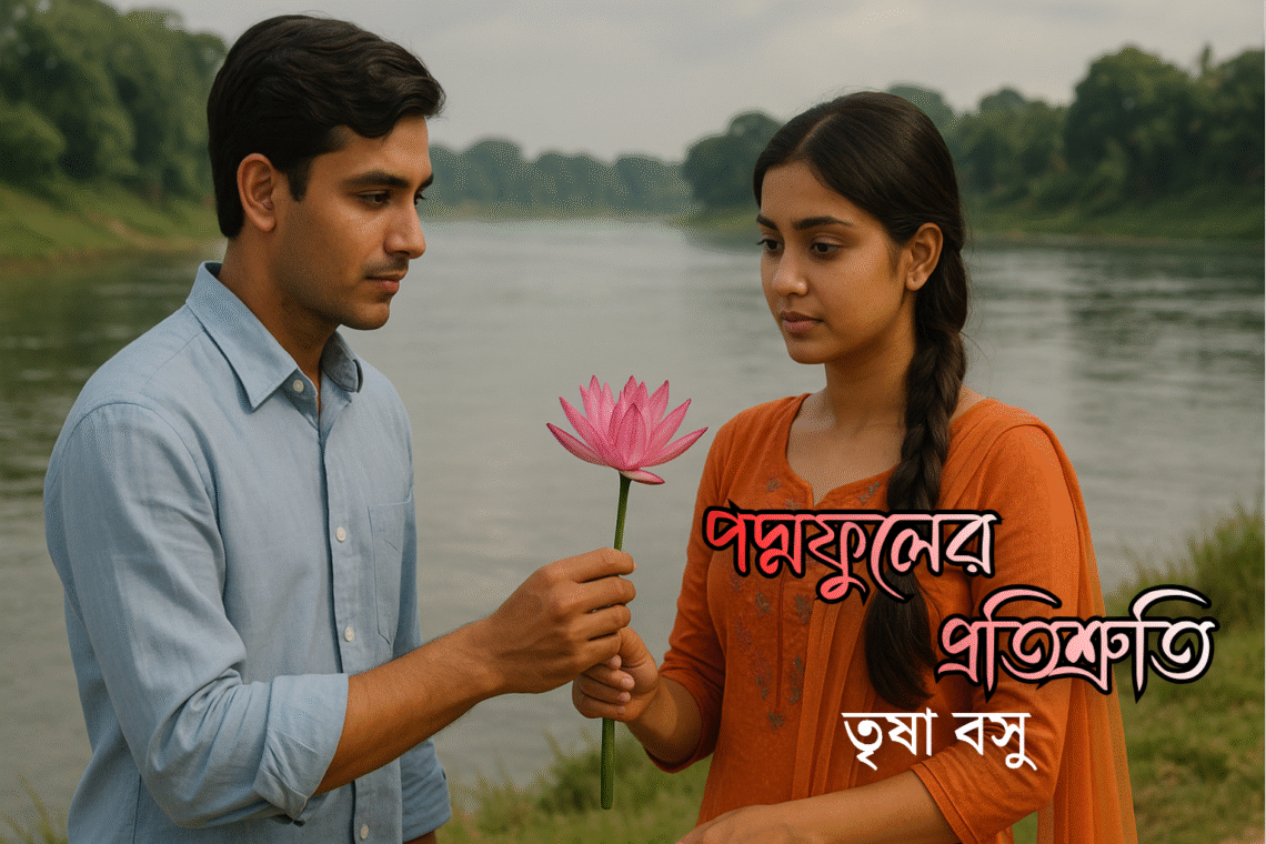 তৃষা বসু অধ্যায় ১ নয়নের শৈশব কেটেছে পদ্ম নদীর তীরের সেই ছোট্ট গ্রামে, যেখানে সকালবেলায় নৌকায় করে জেলে নামত, দুপুরে মাঠে গরু চরাত আর বিকেলে নদীর ঘাটে বসে সূর্যাস্ত দেখত। ছেলেবেলা মানেই ছিল দুষ্টুমি, কাদামাটি, আর নদীর জলে পা ভিজিয়ে শাপলা-পদ্মফুল খুঁজে আনা। গ্রামের স্কুলের রঙচঙে টিনের ছাউনি আর কাঠের বেঞ্চগুলোতে নয়ন পড়ত, কিন্তু মন পড়ে থাকত নদীর পাড়েই। একদিন সেই স্কুলের পথেই দেখা হয় লিপির সঙ্গে—একটি নতুন মেয়ে, যাকে দেখে প্রথমেই নয়নের মনে হয়েছিল, এ যেন নদীর ধারের কোনো পদ্মফুল। লিপির চোখে ছিল এক ধরনের নরম আলো, চুল দু’পাশে বিনুনি করে বাঁধা, আর হাতে ধরা বইয়ের পাতা নাড়তে নাড়তে…