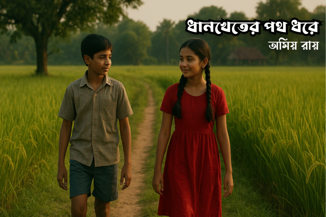 অমিয় রায় এক শৈশবের সেই গ্রামের সকালটা একেবারে জ্যোৎস্নার মতো উজ্জ্বল, কিন্তু তার আলো কখনোই চোখে আঘাত করে না। পলাশ আর তারকা, দুজনেই ছেলেবেলার অদ্ভুত সাহস আর কৌতূহলের সঙ্গে ধানখেতের মধ্যে দৌড়াচ্ছে। ধানের কাঁচা গাছগুলো যেন তাদের হাতছানি দিচ্ছে, আর তাদের খেলা যেন প্রকৃতির সাথে মিশে যাচ্ছে এক অদ্ভুত সমন্বয় তৈরি করে। গ্রামের ঘরে এখনও কেবল ধীরে ধীরে ঘুম ভাঙছে, কয়েকটা হাঁস কষ্টে হাঁসছে, আর পথের ধুলো কৌতূহল নিয়ে সূর্যের আলোয় ঝকঝকে করছে। নদীর ধারে সোনালী রোদ পড়ছে, আর তার মধ্যে ছোট ছোট মাছেরা ঝলমল করে হেঁটে বেড়াচ্ছে। পলাশ হেসে চিৎকার করে বলল, “তারকা, ধরা পড়বি না!” আর তারকা হাসি…