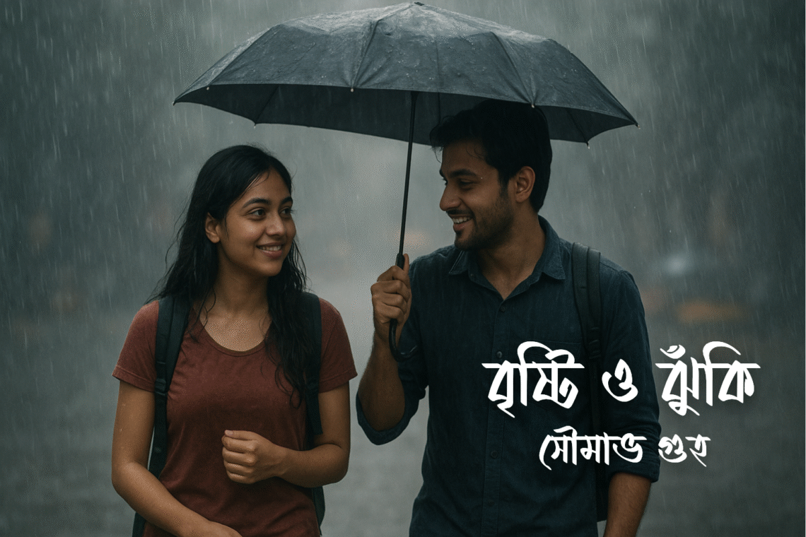 সৌমাভ গুহ ভোর থেকে দুপুর হয়ে গেছে, কিন্তু আকাশ যেন একরকম ম্লান নীলচে ধোঁয়াটে রঙে আচ্ছন্ন। মায়া কলেজের ক্লাস শেষ করে নিজের ব্যাগ হাতে নিয়ে বের হয়, মনে ঘুরপাক খাচ্ছে দিনের কাজের ক্লান্তি আর বন্ধুর সঙ্গে কেচ্ছা। রাস্তা ধুয়ে ধুয়ে যাচ্ছে হালকা হাওয়ায়, কিন্তু আকাশে কোনও পূর্বাভাস নেই যে, খুব শীঘ্রই যেন সেই ধুয়ে যাওয়া রং একটি প্রবল বৃষ্টিতে বদলে যাবে। মায়া ব্যস্ত, চোখে পড়ছে পাশের দোকানের রঙিন শাটার আর গাছের পাতায় জমে থাকা শিশিরের পানি, আর হঠাৎ মনে হলো আকাশে ঘন কালো মেঘ জড়ো হতে শুরু করেছে। মুহূর্তের মধ্যে কুঁড়ে কুঁড়ে বৃষ্টির কণাগুলো ঝরে পড়তে শুরু করে, আর মায়া…