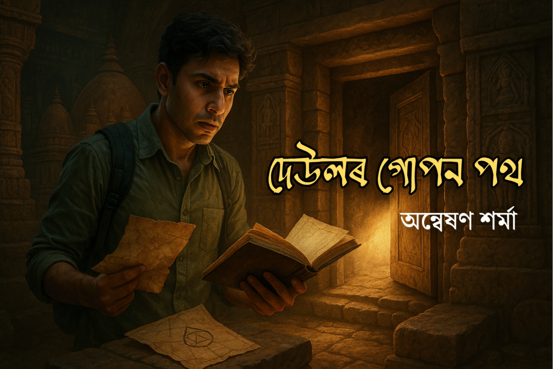 অন্বেষণ শৰ্মা কামাখ্যা মন্দিৰৰ ওচৰৰ পুৱা স্নিগ্ধ বতাহত এখনি ধোঁৱা সদৃশ নীৰৱতা থাকিলেও, অৰণ্য গগৈৰ মনত এক উচাটনি চলি আছিল—এনে এক অভ্যন্তৰীণ অস্থিৰতা যি যেন অদৃশ্য কোনো শক্তিয়ে তেওঁৰ পদক্ষেপ মন্দিৰৰ তলৰ অভিজ্ঞানহীন পথৰ দিশে টানি লৈ গৈ আছিল। গুৱাহাটীৰ পাণ্ডু পুৰাতত্ত্ব গৱেষণা কক্ষে থকা এটি বৰ্জিত মানচিত্ৰত তেওঁৰ চকুত পৰিছিল এটি অদ্ভুত আঁচ—মন্দিৰৰ পূব-পূবদিশৰ ছাঁতলাত থকা শিলাখণ্ডত উল্লিখিত আছিল “জীৱন্ত দেউলৰ কণ্ঠপথ”, যি বহু যুগ ধৰি উপেক্ষিত আছিল। পিএইচডি অভিসন্দর্ভৰ অংশ হিচাপে কামাখ্যাৰ উপৰিওতিহাসিক গঠন আৰু সাধনাৰ সামঞ্জস্য অধ্যয়ন কৰি থকা অৰণ্যৰ মনে মনে এই শিলাখণ্ডক প্ৰকৃতত পৰীক্ষা কৰিবলৈ মন্দিৰৰ ৰাজহুৱা পথ এৰি এটি গোপন পথ ধৰি পূব প্ৰান্তৰ…