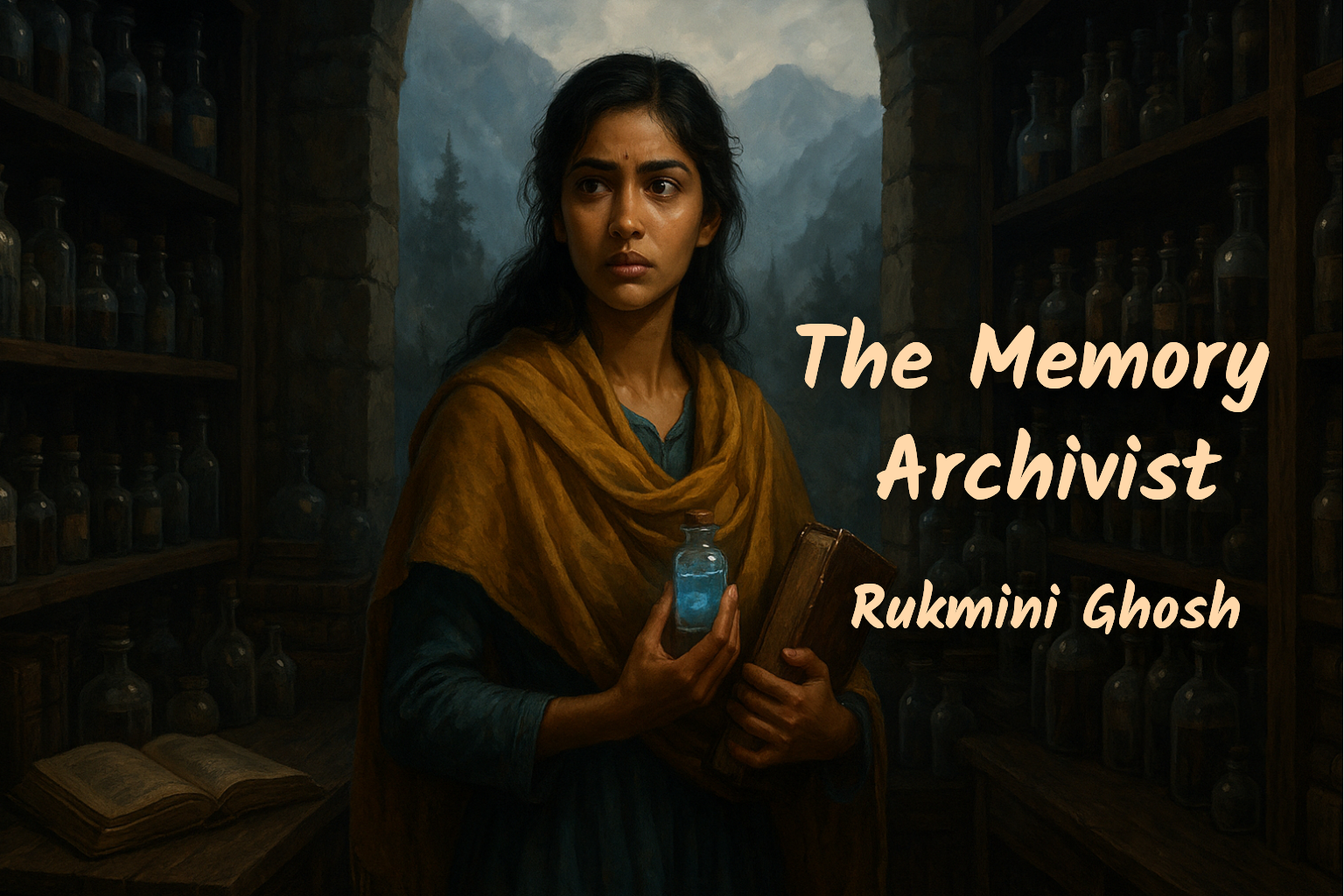 By the following afternoon, armed with a raincoat, her grandmother’s locket, and growing unease, Raina wandered through the twisting alleys of Chhota Shimla. The post had said “between bookshops,” so she followed the old bazaar trail down to a row of shuttered stores near Lakkar Bazaar, mostly abandoned since the pandemic. There, sandwiched between a collapsed stationery shop and a tea stall, was a peculiar wooden door—unmarked, moss-green, and without a handle. She might’ve walked past it, had she not noticed the words barely visible under decades of grime: The Memory Archivist. No bell, no glass, just a tiny brass slot. Raina stood still, unsure whether to knock, speak, or walk away, when the door clicked open soundlessly and revealed a warm, honey-lit interior. Inside, the walls were lined with shelves—each filled with tiny vials glowing in muted hues of amber, emerald, and rose. A gramophone played an old Hindi tune. The scent was unlike anything she’d ever smelled—clove smoke and parchment. Then, from behind a curtain, he emerged: a tall, slender man with silver hair combed neatly back, wearing a Nehru coat and rimless glasses that magnified pale, icy eyes. “You brought a locket,” he said before she spoke a word. “And it remembers.”