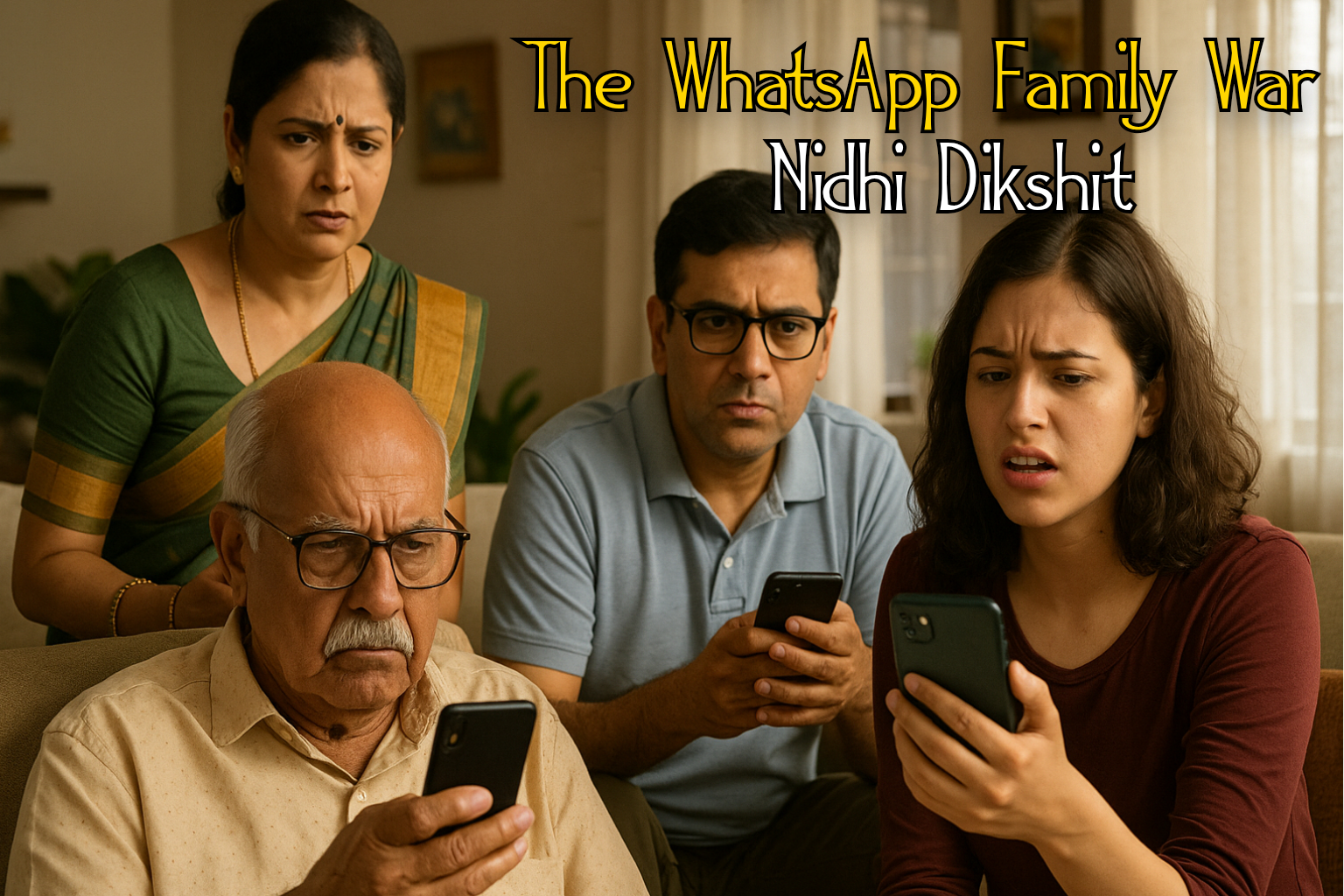 It was a humid Tuesday morning in Pune, and the Dutta household was easing into its usual rhythm of post-breakfast inertia. In their modest 3BHK flat in Kothrud, Nana—Sudhir Dutta—sat cross-legged on his beige recliner, spectacles low on his nose, staring intensely at his smartphone. The television blared muted headlines in the background while the pressure cooker hissed from the kitchen. But Nana was engaged in a more critical national duty: circulating what he firmly believed was a “government scheme for Hindustan ke asli nagrik.” The image, a low-resolution JPEG full of typos and saffron borders, declared that every senior citizen would get ₹50,000 under a new patriotic pension yojana, provided they forwarded the message to at least ten people and submitted their Aadhaar number to a form link that looked suspiciously like a porn site domain. Unaware and unbothered, Nana dutifully forwarded the message to every group he was part of: “Pune Morning Walkers,” “Ex-Govt Retirees,” “Aaryavarta Warriors,” and finally—most importantly—to the battleground itself: “Dutta Parivaar.” Within seconds, the virtual tremor was felt across Maharashtra and abroad, from their cousin in London to their jobless nephew in Nagpur. A blue double tick blinked on screen as the message landed, and just like that, the war began.